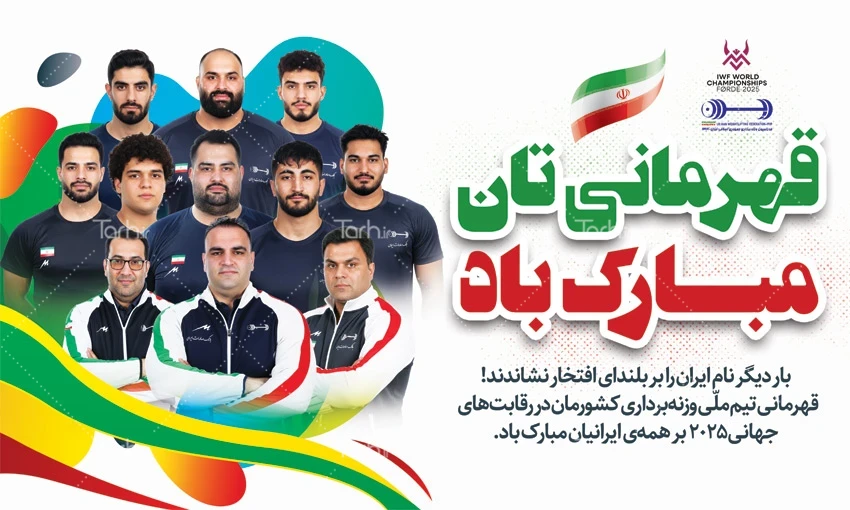 دانلود طرح بنر قهرمانی تیم وزنه برداری ایران با فرمت psd و قابل ویرایش در نرم افزار فتوشاپ به صورت لایه باز توسط تیم طراحان طرح دات آی آر طراحی شده است. در طرح لایه باز قهرمانی وزنه برداران ایران از تصاویر و المان های با کیفیت و متناسب با استاندارد چاپ استفاده گردیده است. طرح بنر تبریک قهرمانی تیم ملی وزنه برداری شامل محل عکس تیم ملی وزنه برداری ایران به همراه وکتور پرچم ایران می باشد که المان های استفاده شده در بنر لایه باز قهرمانی وزنه برداری قابلیت ویرایش، جابه جایی و تغییر سایز را دارا بوده و شما می توانید متناسب با سلیقه خودتان بنر لایه باز تبریک قهرمانی تیم ملی وزنه برداری را ویرایش نمایید.