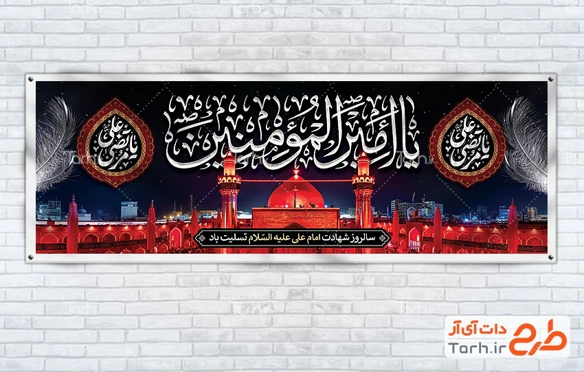 طرح پلاکارد خام شهادت امام علی دارای تایپوگرافی یا امیرالمومنین کد فایل 8016537