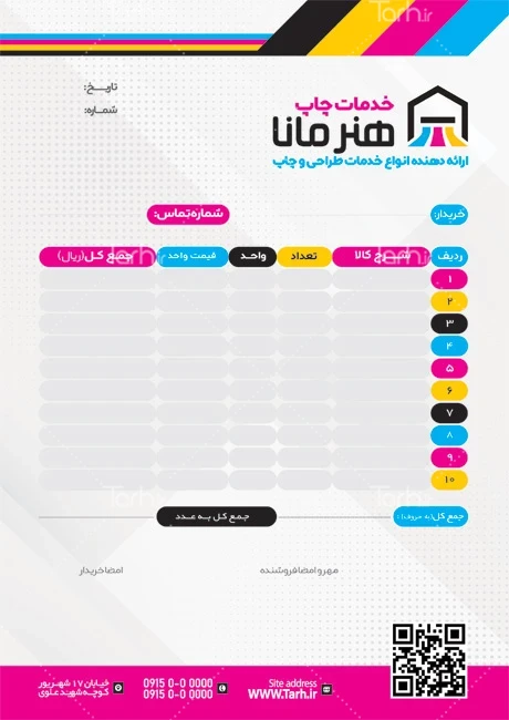 دانلود طرح لایه باز فاکتور چاپخانه با قابلیت ویرایش المان ها کد فایل 8051732