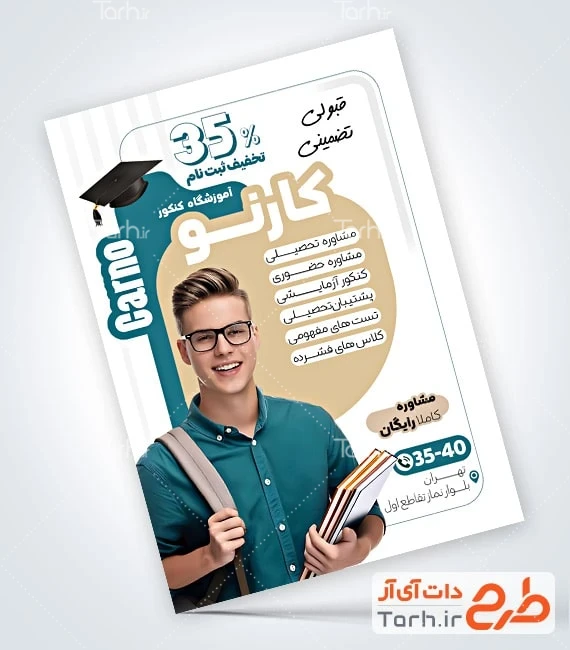 طرح لایه باز تراکت آموزشگاه کنکور با عکس دانش آموز کد فایل 8054217