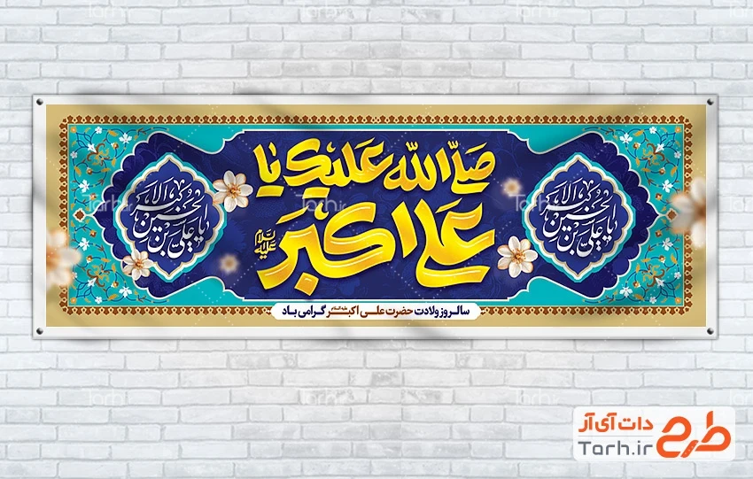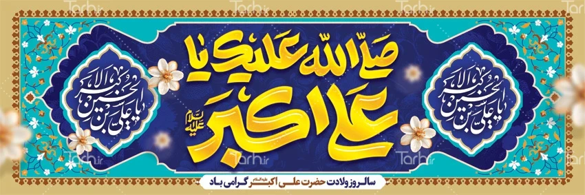 طرح آماده پلاکارد ولادت حضرت علی اکبر با تایپوگرافی صلی الله علیک یا علی اکبر کد فایل 8054721