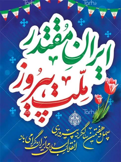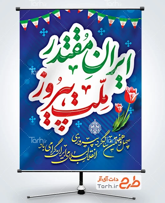پوستر دهه فجر لایه باز با خوشنویسی ایران مقتدر ملت پیروز کد فایل 8104792