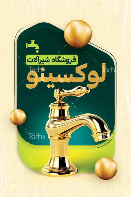 طرح آماده کارت ویزیت شیرآلات ساختمانی با تم طلایی کد فایل 8105493