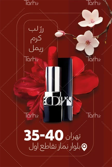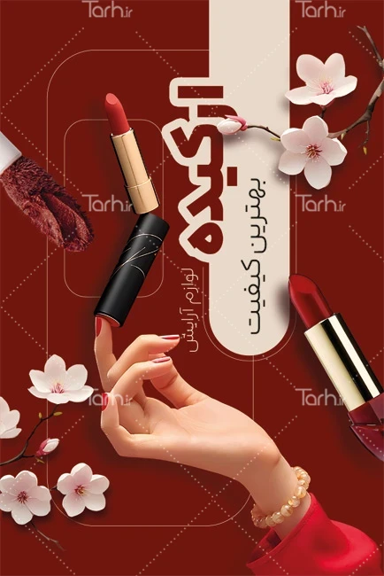 فایل لایه باز کارت ویزیت لوازم آرایشی با تم قرمز کد فایل 8123965