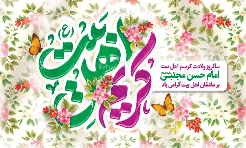 طرح بنر پشت سن میلاد امام حسن مجتبی با تایپوگرافی کریم اهل بیت کد فایل 8165204