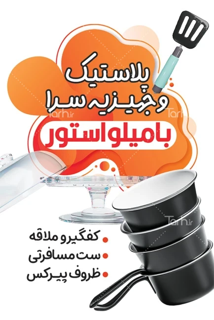 نمونه کارت ویزیت ظروف پلاستیکی با تم نارنجی کد فایل 8179045