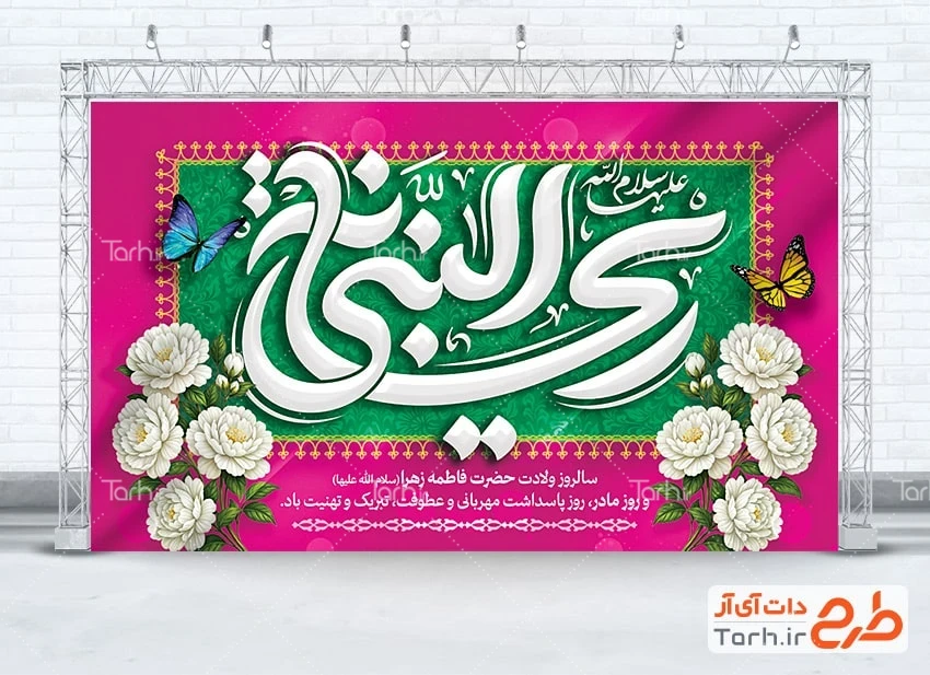 ابعاد قابل چاپ بنر پشت منبری ولادت حضرت فاطمه زهرا و روز زن و کاربرد آن