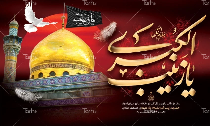 دانلود بنر پشت منبری رحلت حضرت زینب با فرمت psd و قابل ویرایش در نرم افزار فتوشاپ به صورت لایه باز توسط تیم طراحان طرح دات آی آر طراحی شده است. در طرح لایه باز پشت منبر وفات حضرت زینب از تصاویر و المان های با کیفیت و متناسب با استاندارد چاپ استفاده گردیده است. طرح لایه باز بنر پشت منبری وفات حضرت زینب شامل تایپوگرافی یا زینب کبری، عکس حرم حضرت زینب و متن تسلیت وفات حضرت زینب می باشد که المان های استفاده شده در طرح بنر پشت مداح وفات حضرت زینب کبری قابلیت ویرایش، جابه جایی و تغییر سایز را دارا بوده و شما می توانید متناسب با سلیقه خودتان طرح دکور شهادت حضرت زینب لایه باز را ویرایش نمایید.