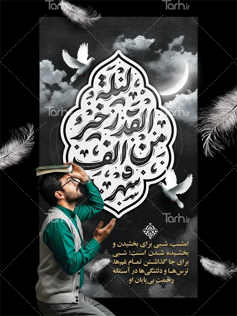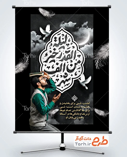 طرح بنر لایه باز شبهای قدر شامل تایپوگرافی لیله القدر خیر من الف شهر کد فایل 8329407
