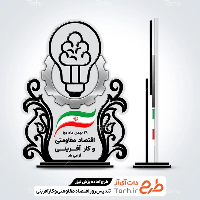 طرح برش لیزری تندیس روز اقتصاد مقاومتی و کارآفرینی کد فایل 8356201