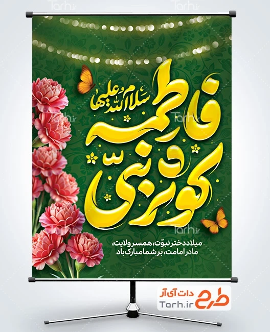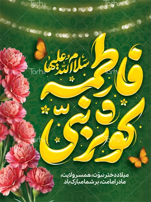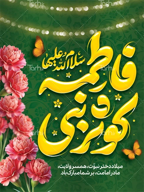 طرح بنر میلاد حضرت فاطمه با تایپوگرافی فاطمه کوثر نبی کد فایل 8360957