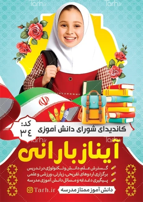 فایل لایه باز تراکت انتخابات مدرسه با فرمت psd و قابل ویرایش در نرمافزار فتوشاپ بهصورت لایه باز توسط تیم طراحان طرح دات آی آر طراحی شده است. در نمونه تراکت انتخابات شورای دانش آموزی از تصاویر و المانهای باکیفیت و متناسب با استاندارد چاپ استفادهشده، همچنین نکات مهم در تراکت لایه باز انتخابات دانش آموزی مانند رنگبندی، رعایت حاشیه، فاصلهها، فضای کافی برای درج متن، سایز و نوع فونت مناسب طراحی تراکت و ... رعایت گردیده است. طرح لایه باز تراکت انتخابات شورای مدرسه شامل شامل محل جایگذاری عکس دانش آموز میباشد که المانهای استفادهشده در طرح تراکت انتخابات شورای دانش آموزی مدرسه قابلیت ویرایش، جابهجایی و تغییر سایز را دارا بوده و شما میتوانید متناسب باسلیقه خودتان پوستر لایه باز انتخابات شورای دانش آموزی را ویرایش نمایید، همچنین با تغییر تصاویر و متنها میتوانید طرح تراکت انتخابات دانش آموزی را به طرح تراکت کسب و کار مد نظر خود شخصی سازی نمایید.