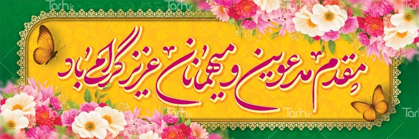 طرح پلاکارد خیر مقدم مدعوین با فرمت psd و قابل ویرایش در نرم افزار فتوشاپ به صورت لایه باز توسط تیم طراحان طرح دات آی آر طراحی شده است. در طرح لایه باز بنر خیر مقدم از تصاویر و المان های با کیفیت و متناسب با استاندارد چاپ استفاده گردیده است. طرح بنر خیر مقدم شامل خوشنویسی مقدم مدعوین و میهمانان عزیز گرامی باد و وکتور گل می باشد که المان های استفاده شده در بنر خیر مقدم مدعوین قابلیت ویرایش، جابه جایی و تغییر سایز را دارا بوده و شما می توانید متناسب با سلیقه خودتان طرح خیرمقدم را ویرایش نمایید.
