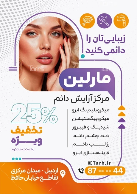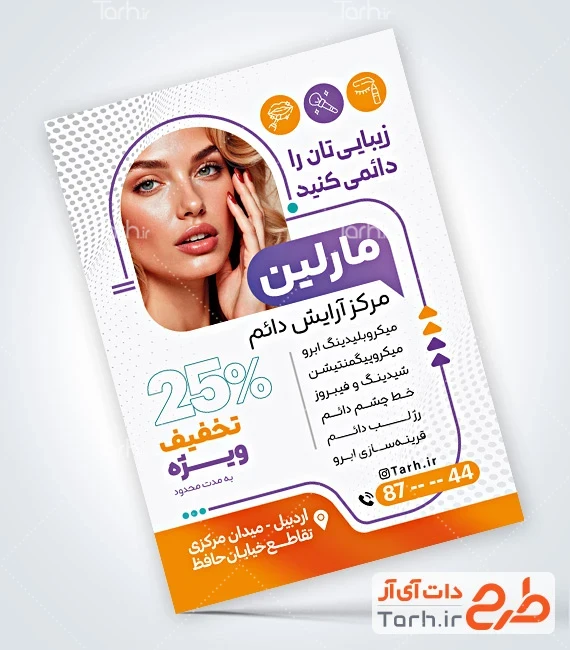 دانلود طرح تراکت مرکز آرایش دائم با عکس مدل زن کد فایل 8391640