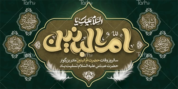 طرح لایه باز پلاکارد وفات حضرت ام البنین با تایپوگرافی السلام علیک یا ام البنین کد فایل 8395406