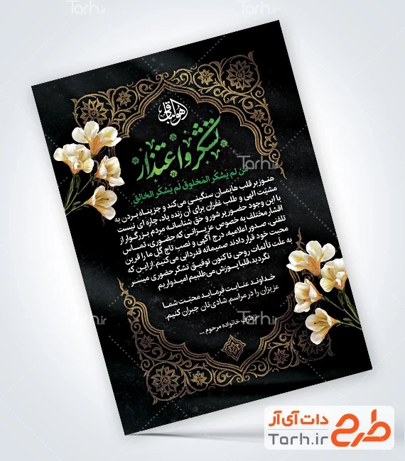 ابعاد اعلامیه خام تشکر و اعتذار در جدول ویژگیهای فایل، درج شده و با توجه به لایه باز بودن و کیفیت بالای طرح اعلامیه تشکر و اعتذار مجلس ترحیم، قابلیت ویرایش و تبدیل به سایز دلخواه و همچنین چاپ در ابعاد و متریالهای مختلف را دارا میباشد. همچنین میتوان طرح لایه باز آگهی تشکر و اعتذار مجلس ختم را در قالب تشکر و قدردانی مجازی ترحیم هم استفاده کرد. همچنین میتوان از المانهای این طرح برای طراحی آگهی ترحیم نیز بهره برد. تراکت تشکر و اعتذار لایه باز به منظور تشکر و قدردانی از ابراز همدردی شرکت کنندگان مجلس ترحیم فرد درگذشته استفاده میشود.