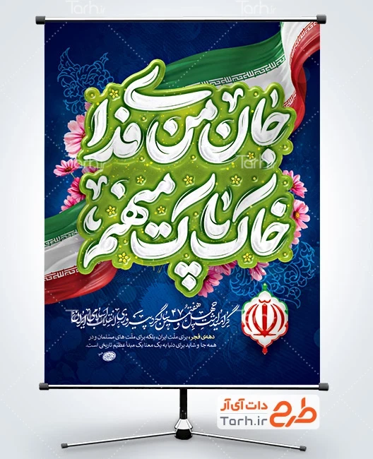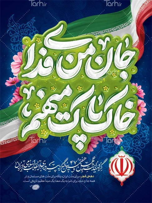 طرح پوستر لایه باز دهه فجر با تایپوگرافی جان من فدای خاک پاک میهنم کد فایل 8423095