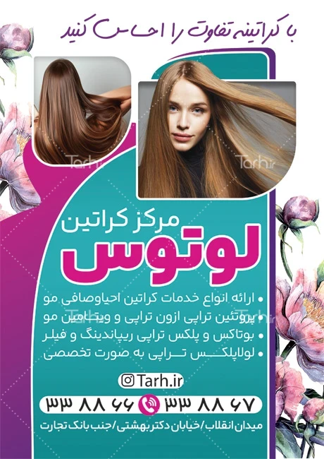 طرح psd تراکت مرکز کراتین مو با وکتور گل کد فایل 8432095