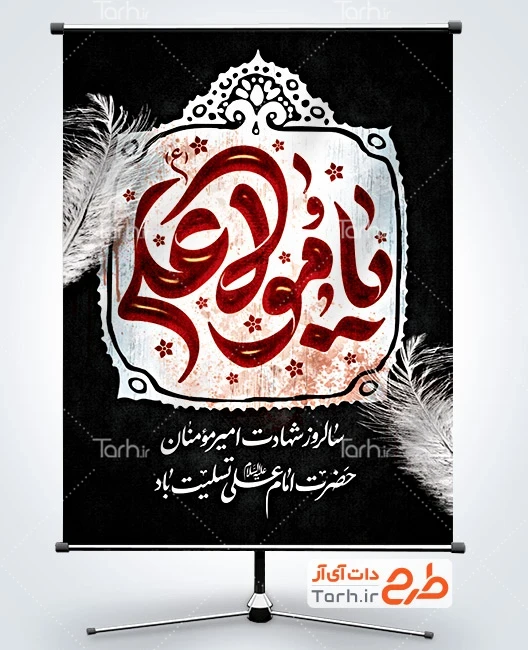 طرح پوستر شهادت امام علی با خوشنویسی یا مولا علی کد فایل 8451039