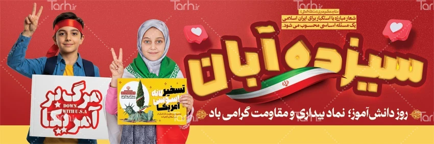طرح لایه باز پلاکارد 13 آبان با عکس دانش آموز کد فایل 8493571