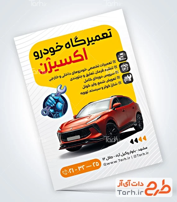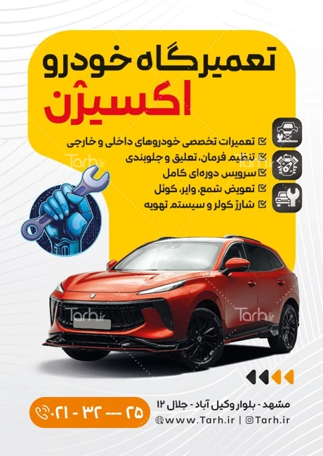 طرح تراکت تبلیغاتی تعمیرگاه خودرو دارای عکس ماشین کد فایل 8521693