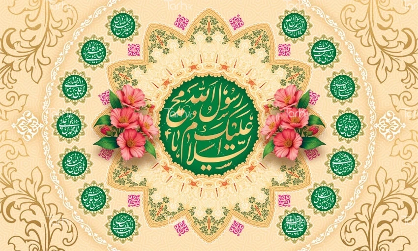 طرح بنر جایگاه مبعث با تایپوگرافی اسامی چهارده معصوم کد فایل 8532140