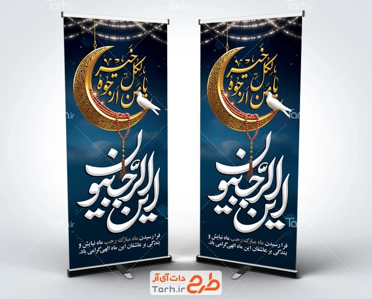 طرح لایه باز استند حلول ماه رجب شامل تایپوگرافی این الرجبیون کد فایل 8537209