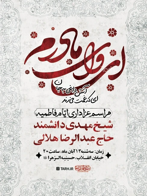 طرح بنر اطلاعیه فاطمیه با فرمت psd و قابل ویرایش در نرم افزار فتوشاپ به صورت لایه باز توسط تیم طراحان طرح دات آی آر طراحی شده است. در طرح لایه باز اطلاعیه فاطمیه از تصاویر و المان های با کیفیت و متناسب با استاندارد چاپ استفاده گردیده است. طرح اطلاعیه خام ایام فاطمیه شامل خوشنویسی ای وای مادرم و دارای زمان و مکان مراسم روضه و عزاداری می باشد که المان های استفاده شده در طرح لایه باز پوستر شهادت حضرت فاطمه قابلیت ویرایش، جابه جایی و تغییر سایز را دارا بوده و شما می توانید متناسب با سلیقه خودتان طرح اطلاعیه شهادت حضرت فاطمه را ویرایش نمایید.