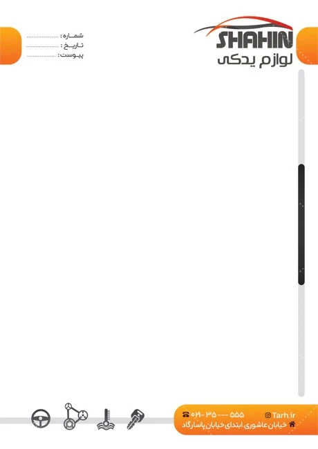 طرح آماده سربرگ فروش لوازم یدکی با فرمت psd و قابل ویرایش در نرمافزار فتوشاپ بهصورت لایه باز توسط تیم طراحان طرح دات آی آر طراحی شده است. در طرح لایه باز سربرگ فروشگاه لوازم یدکی از المانهای باکیفیت و متناسب با استاندارد چاپ استفادهشده، همچنین نکات مهم در طرح سربرگ خام لوازم یدکی ماشین مانند رنگبندی، رعایت حاشیه، فاصلهها، فضای کافی برای درج متن، سایز و نوع فونت مناسب طراحی سربرگ و ... رعایت گردیده است. سربرگ لایه باز قطعات یدکی شامل وکتور لوازم یدکی و محل جایگذاری مشخصات میباشد که المانهای استفادهشده در نمونه سربرگ فروشگاه لوازم یدکی خودرو قابلیت ویرایش، جابهجایی و تغییر سایز را دارا بوده و شما میتوانید متناسب باسلیقه خودتان طرح سربرگ فروشگاه لوازم یدکی را ویرایش نمایید، همچنین با تغییر لوگو و متنها میتوانید طرح سربرگ لوازم یدکی خودرو را به طرح سربرگ کسب و کار مد نظر خود شخصی سازی نمایید. در اسناد و نامههای اداری و تجاری، سربرگ به عنوان وسیلهای برای نمایش اطلاعاتی مانند نام و لوگو یک شرکت یا سازمان، عنوان سند، تاریخ، شماره صفحه و اطلاعات تماس ( شماره تلفن، آدرس پستی، وبسایت و ایمیل) به کار میرود. این اطلاعات به دریافتکننده کمک میکند تا به راحتی با شرکت یا سازمان تماس بگیرد یا از منابع اطلاعاتی بیشتری بهرهبرداری کند.