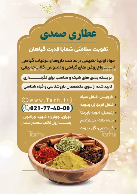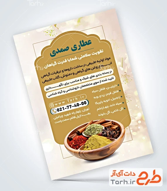 نمونه تراکت گیاهان دارویی با عکس ادویه کد فایل 8543720