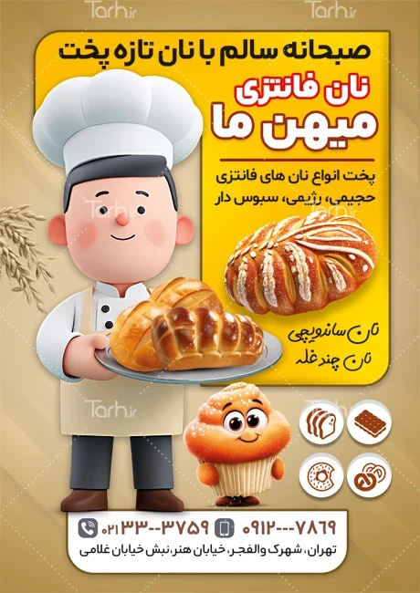 تراکت خام نانوایی فانتزی با تصویرسازی نانوا کد فایل 8547192