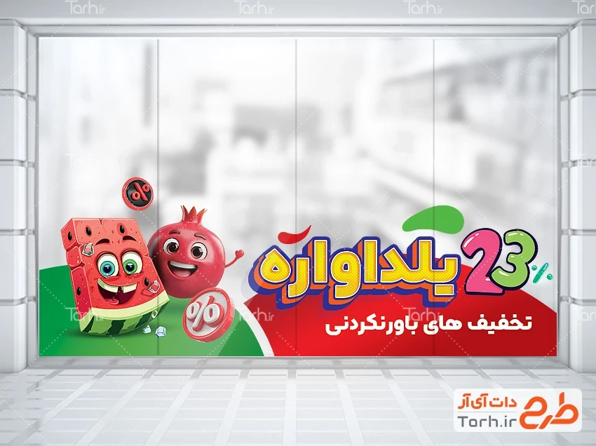 فایل برچسب تخفیف شب چله با فرمت psb و قابل ویرایش در نرم افزار فتوشاپ به صورت لایه باز توسط تیم طراحان طرح دات آی آر طراحی شده است. در طرح استیکر تبلیغاتی فروش ویژه یلدایی از تصاویر و المان های با کیفیت و متناسب با استاندارد چاپ استفاده شده، همچنین نکات مهم در طرح لایه باز استیکر فروش ویژه تخفیف یلدایی مانند رنگ بندی، رعایت حاشیه، فاصله ها، سایز و نوع فونت مناسب طراحی استیکر و ... رعایت گردیده است. طرح برچسب روی شیشه فروش ویژه شامل تصویرسازی هندوانه و انار می باشد و المان های استفاده شده در طرح استیکر تخفیف ویژه یلدا قابلیت ویرایش، جابه جایی و تغییر سایز را دارا بوده و شما می توانید متناسب با سلیقه خودتان طرح برچسب دیواری فروش ویژه یلدا را ویرایش نمایید، همچنین با تغییر تصاویر و متن ها می توانید طرح استیکر تخفیف ویژه یلدایی را به طرح استیکر شغل مورد نظر خود تبدیل نمایید.