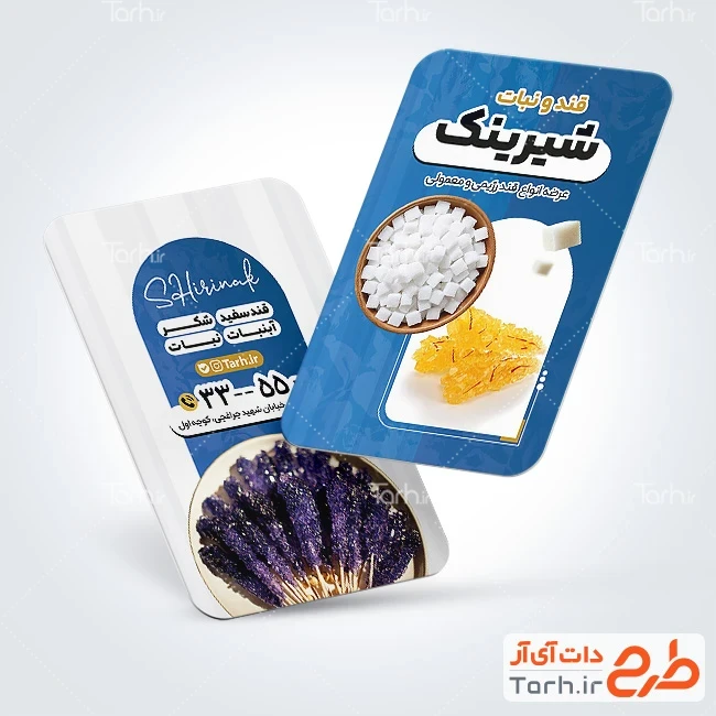 طرح آماده کارت ویزیت فروش قند و نبات با فرمت psd و قابل ویرایش در نرمافزار فتوشاپ بهصورت لایه باز و پشت و رو (دو رو) توسط تیم طراحان طرح دات آی آر طراحی شده است. طرح کارت ویزیت قند و نبات از تصاویر و المانهای باکیفیت و متناسب با استاندارد چاپ استفادهشده، همچنین نکات مهم در طرح کارت ویزیت مانند رنگبندی، رعایت حاشیه، فاصلهها، فضای کافی برای درج متن، سایز و نوع فونت مناسب طراحی کارت ویزیت و ... رعایت گردیده است. نمونه کارت ویزیت قند و نبات شامل عکس قند و نبات میباشد که المانهای استفادهشده در طرح کارت ویزیت نبات ریزی قابلیت ویرایش، جابهجایی و تغییر سایز را دارا بوده و شما میتوانید متناسب باسلیقه خودتان کارت ویزیت لایه باز قند و نبات را ویرایش نمایید، همچنین با تغییر تصاویر و متنها میتوانید طرح کارت ویزیت فروشگاه قند و نبات را به طرح کارت ویزیت کسب و کار مد نظر خود شخصی سازی نمایید.