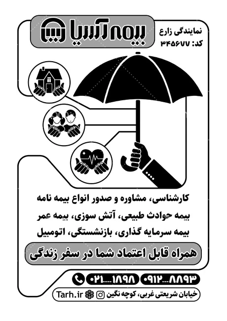 نمونه تراکت سیاه سفید نمایندگی بیمه آسیا با وکتور چتر کد فایل 8609417