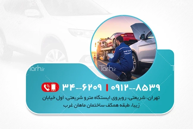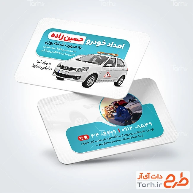 فایل لایه باز کارت ویزیت امداد خودرو و یدک کش با عکس ماشین امداد خودرو کد فایل 8631209