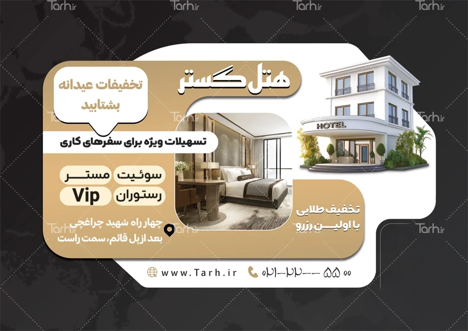 طرح تراکت آماده هتل با قابلیت ویرایش المان ها کد فایل 8631429
