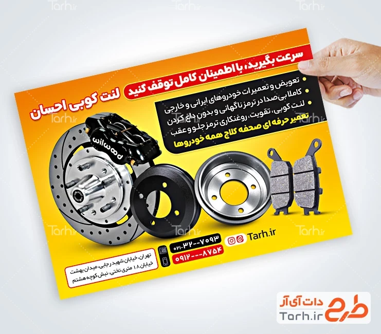 طرح تراکت آماده لنت کوبی دارای عکس لنت خودرو کد فایل 8652374