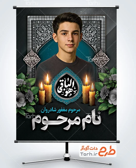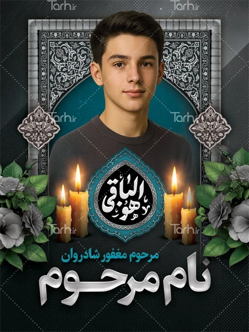 طرح آماده بنر عکس مرحوم با خوشنویسی هوالباقی کد فایل 8695104