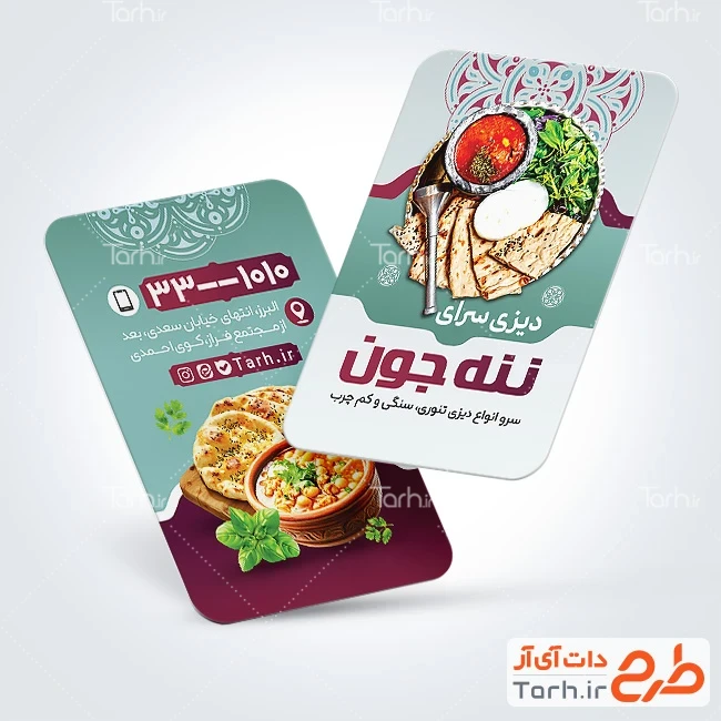 ابعاد طرح کارت ویزیت رستوران سنتی دیزی و دیزی سرا در جدول ویژگیهای فایل درجشده و با توجه به لایه باز بودن و کیفیت بالای طرح لایه باز کارت ویزیت دیزی، قابلیت ویرایش و تبدیل به سایز دلخواه مانند کارت ویزیت مربع، دایره، برش خاص، قالب اختصاصی و ... را دارا میباشد. کارت ویزیت خام دیزی سرا قابلیت چاپ افست و چاپ دیجیتال روی انواع جنس کارت ویزیت مانند گلاسه، لمینت، کتان، کرافت، سلفون و پیویسی و ... را دارد. همچنین میتوان از طرح های کارت ویزیت جهت چاپ اتیکت، لیبل، کارت آویز و ... نیز استفاده کرد.