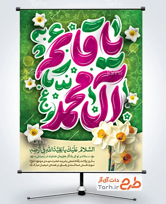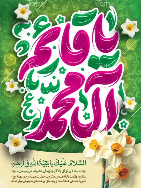 طرح خام پوستر ولادت امام زمان با تایپوگرافی یا قائم آل محمد کد فایل 8715629
