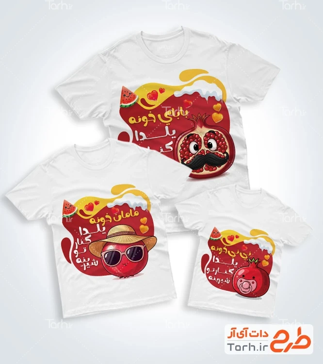 طرح لایه باز تیشرت یلدا ست خانوادگی با تصویرسازی انار کد فایل 8742301