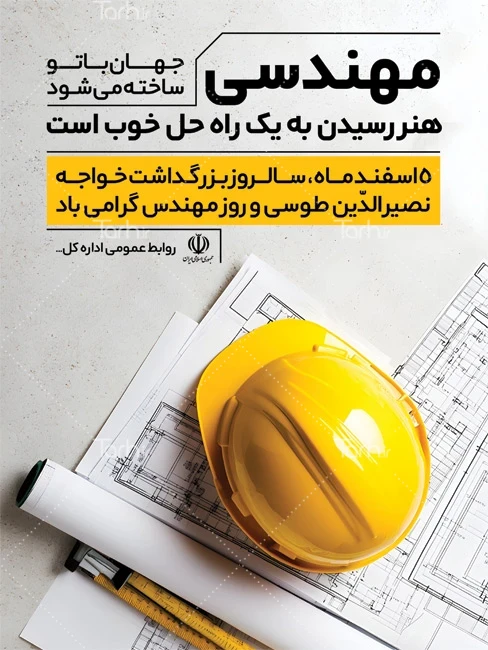 طرح لایه باز بنر روز مهندس شامل عکس کلاه و نقشه مهندسی کد فایل 8753192
