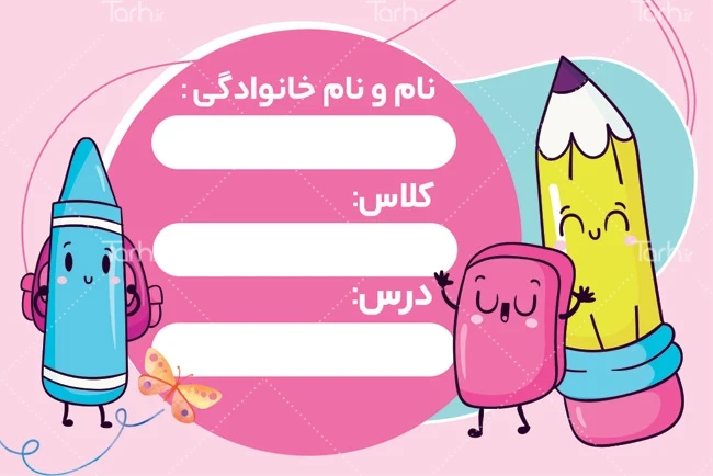 نمونه برچسب نام دانش آموز با فرمت psd و قابل ویرایش در نرم افزار فتوشاپ به صورت لایه باز توسط تیم طراحان طرح دات آی آر طراحی شده است. در طرح برچسب اسم دانش آموز و دفتر از تصاویر و المانهای با کیفیت و متناسب با استاندارد چاپ استفاده شده است. فایل لایه باز برچسب کتاب برای درج نام و نام خانوادگی بر روی جلد دفتر و کتاب درسی قابل استفاده است. طرح برچسب اسم دانش آموزان شامل وکتور لوازم التحریر، جایگاه اسم، فامیل و مقطع تحصیلی میباشد و المانهای استفاده شده در طرح برچسب دفتر مشق لایه باز قابلیت ویرایش، جابه جایی و تغییر سایز را دارا بوده و شما می توانید متناسب با سلیقه خودتان طرح لایه باز برچسب کتاب و دفتر را ویرایش نمایید.