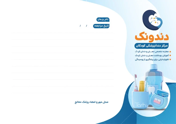 طرح سرنسخه دکتر دندانپزشکی دارای وکتور مسواک و دهانشویه کد فایل 8756190