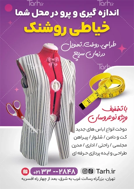 نمونه تراکت آماده خیاطی بانوان با عکس متر و قیچی کد فایل 8761495