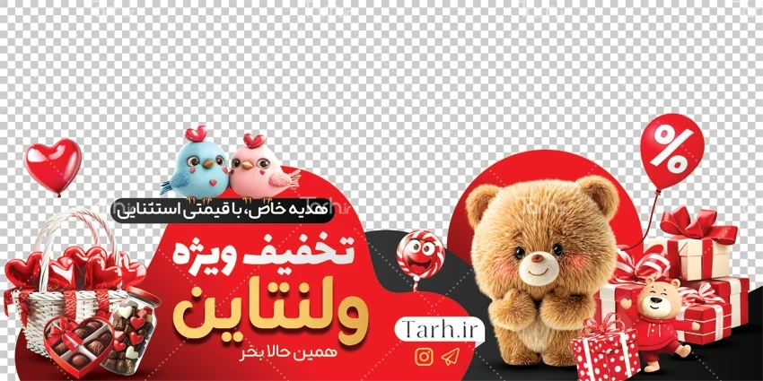 طرح لایه باز استیکر تخفیف روز عشق با عکس عروسک خرس کد فایل 8791260