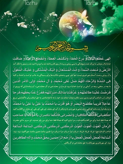 بنر psd دعای فرج رایگان با متن دعای الهی عظم البلا کد فایل 8820960