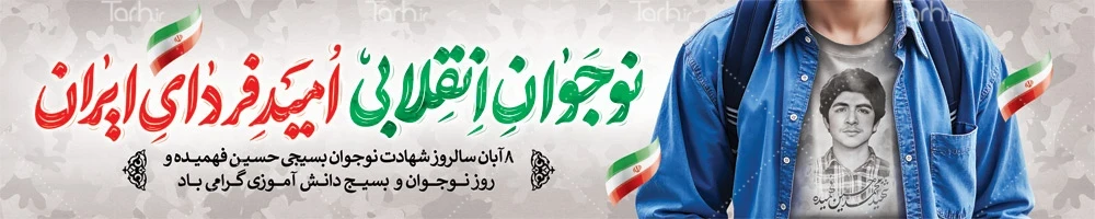 طرح لایه باز بیلبورد روز نوجوان با فرمت psd و قابل ویرایش در نرم افزار فتوشاپ به صورت لایه باز توسط تیم طراحان طرح دات آی آر طراحی شده است. در بنر بیلبورد شهید حسین فهمیده و روز نوجوان از تصاویر و المان های با کیفیت و متناسب با استاندارد چاپ استفاده گردیده است. بنر لایه باز هفته بسیج دانش آموزی شامل تایپوگرافی نوجوان انقلابی امید فردای ایران، عکس شهید حسین فهمیده می باشد که المان های استفاده شده در طرح بیلبورد هفته بسیج دانش آموزی قابلیت ویرایش، جابه جایی و تغییر سایز را دارا بوده و شما می توانید متناسب با سلیقه خودتان بنر لایه باز روز بسیج دانش آموزی را ویرایش نمایید.