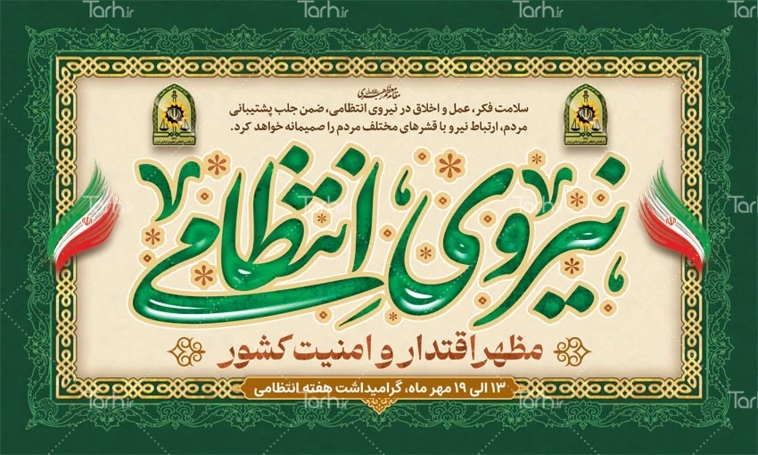دانلود بنر تبریک هفته نیروی انتظامی با فرمت psd و قابل ویرایش در نرم افزار فتوشاپ به صورت لایه باز توسط تیم طراحان طرح دات آی آر طراحی شده است. در بنر خام روز نیروی انتظامی از تصاویر و المان های با کیفیت و متناسب با استاندارد چاپ استفاده گردیده است. پوستر هفته پلیس شامل خوشنویسی نیروی انتظامی، آرم نیروی انتظامی می باشد که المان های استفاده شده در طرح لایه باز بنر هفته نیروی انتظامی قابلیت ویرایش، جابه جایی و تغییر سایز را دارا بوده و شما می توانید متناسب با سلیقه خودتان طرح هفته نیروی انتظامی را ویرایش نمایید.
