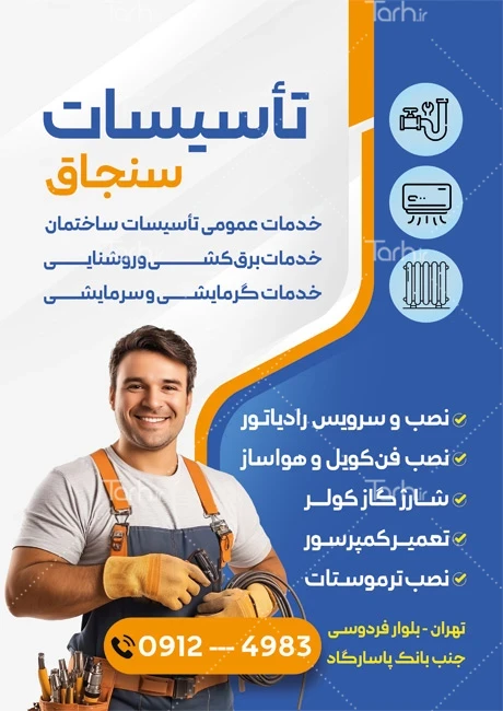 تراکت خام تاسیسات ساختمانی با فرمت psd و قابل ویرایش در نرمافزار فتوشاپ بهصورت لایه باز توسط تیم طراحان طرح دات آی آر طراحی شده است. در طرح تراکت تاسیسات از تصاویر و المانهای باکیفیت و متناسب با استاندارد چاپ استفادهشده، همچنین نکات مهم در تراکت لایه باز مانند رنگبندی، رعایت حاشیه، فاصلهها، فضای کافی برای درج متن، سایز و نوع فونت مناسب طراحی تراکت و ... رعایت گردیده است. طرح لایه باز تراکت تاسیسات شامل عکس تعمیرکار میباشد که المانهای استفادهشده در دانلود تراکت لوله و شیرآلات قابلیت ویرایش، جابهجایی و تغییر سایز را دارا بوده و شما میتوانید متناسب باسلیقه خودتان طرح لایه باز تراکت تاسیسات و لوله اتصالات را ویرایش نمایید، همچنین با تغییر تصاویر و متنها میتوانید طرح تراکت لوله و لوازم بهداشتی را به طرح تراکت کسب و کار مد نظر خود شخصی سازی نمایید.